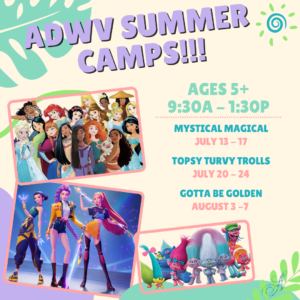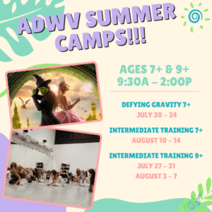 We are offering themed Summer Dance Camps to add a little excitement as we continue our training into the warm days of summer. We are offering classes to ages 3-6, 7+ and 9+. Take a look and see which weeks you’d like to join us for!