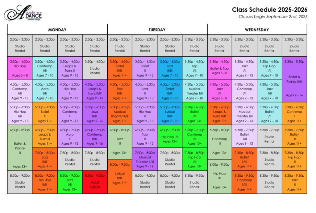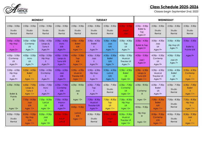 Fall Classes begin Tuesday, September 2nd, 2025!